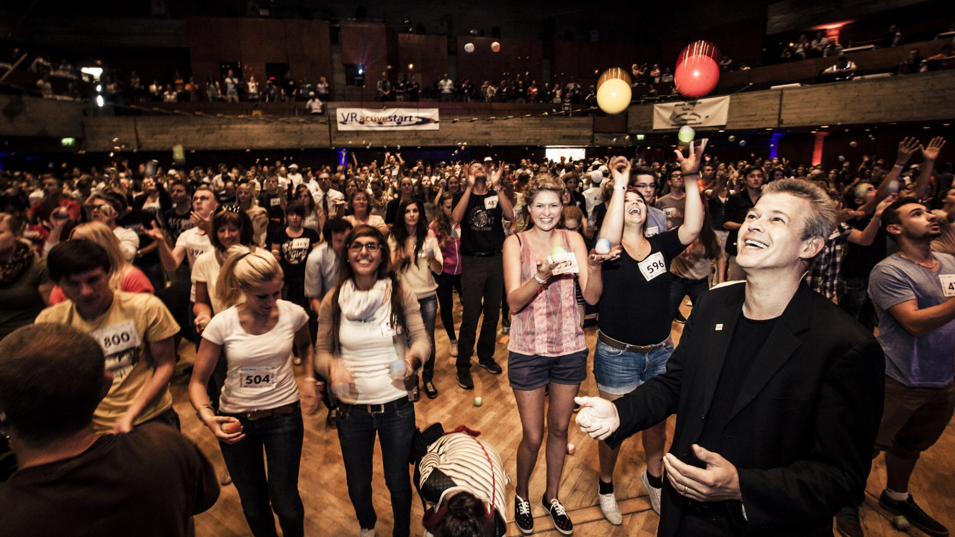 Wir bringen 12, 120 oder 1.200 Telnehmern gleichzeitig (!) in 20 oder 30 Min. das Jonglieren mit 3 Bällen bei.