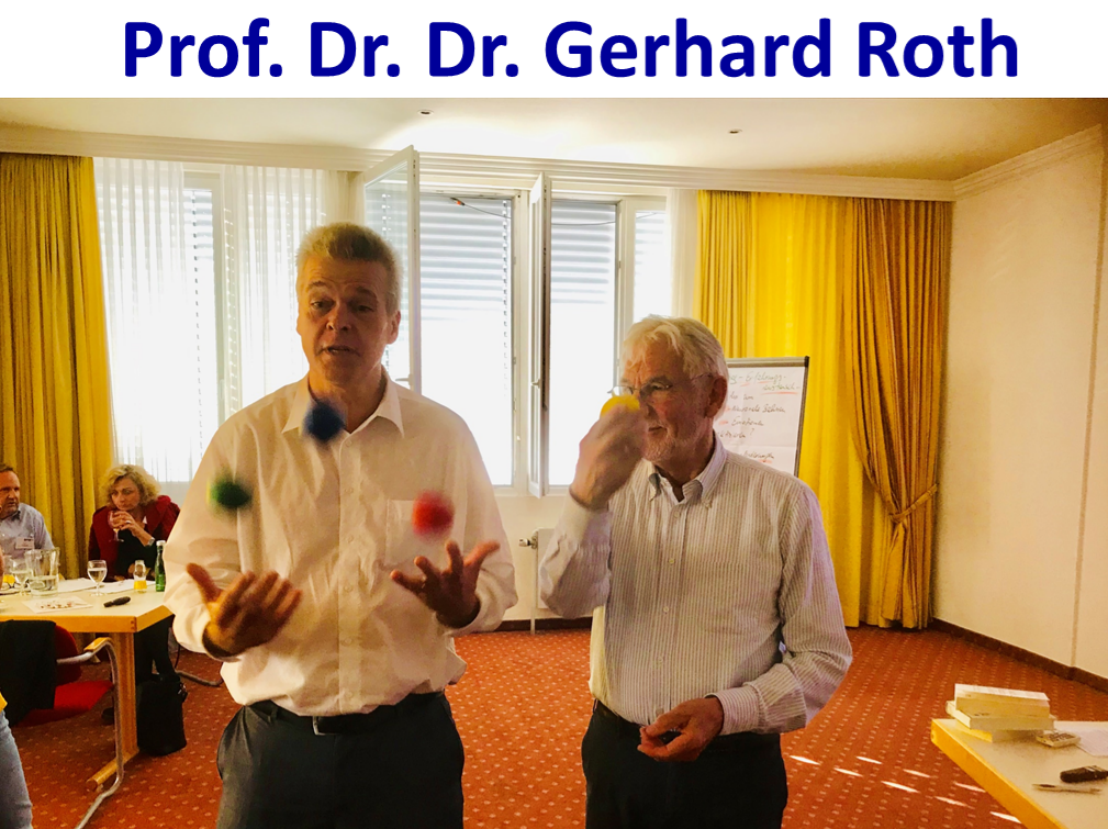 Stephan Ehlers jonglierte u.a. auch mit Deutschlands namhaftesten Gehirnforschern: Prof. Dr. Dr. Gerald Hüther, Prof. Dr. Dr. Manfred Spitzer und Prof. Dr. Dr. Gerhard Roth: